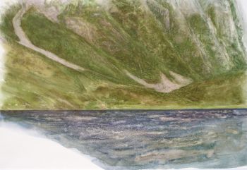 Le lac d'Espingo au couchant 2009. 30/40 cm
