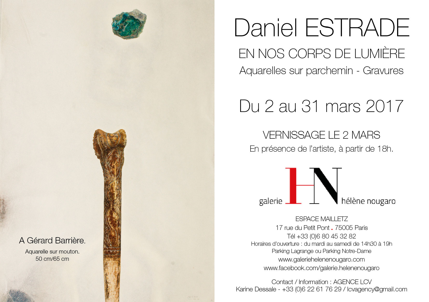 Exposition à la Galerie Hélène Nougaro en Mars 2017. Le carton d'invitation, les aquarelles et une interview de Daniel dans le cadre de l'exposition.